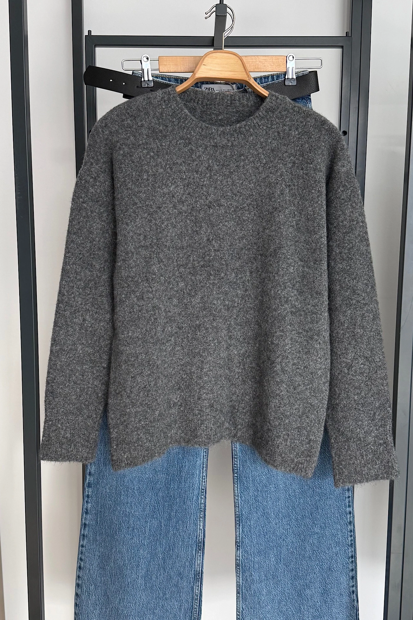 Şardonlu Alpaka Karışımlı Triko Kazak Karamel