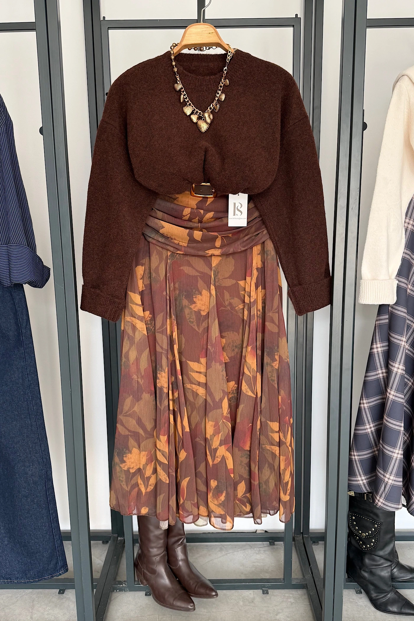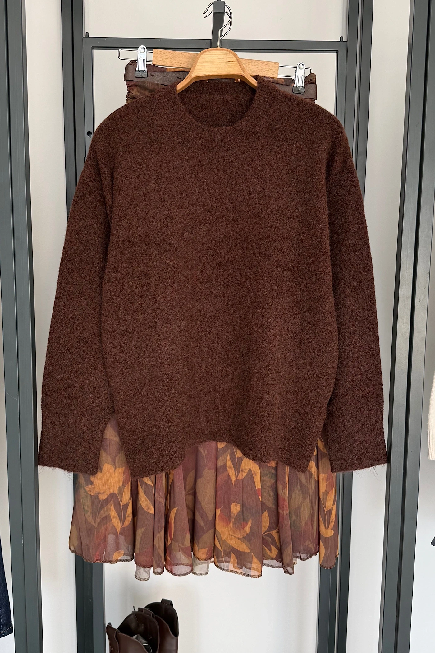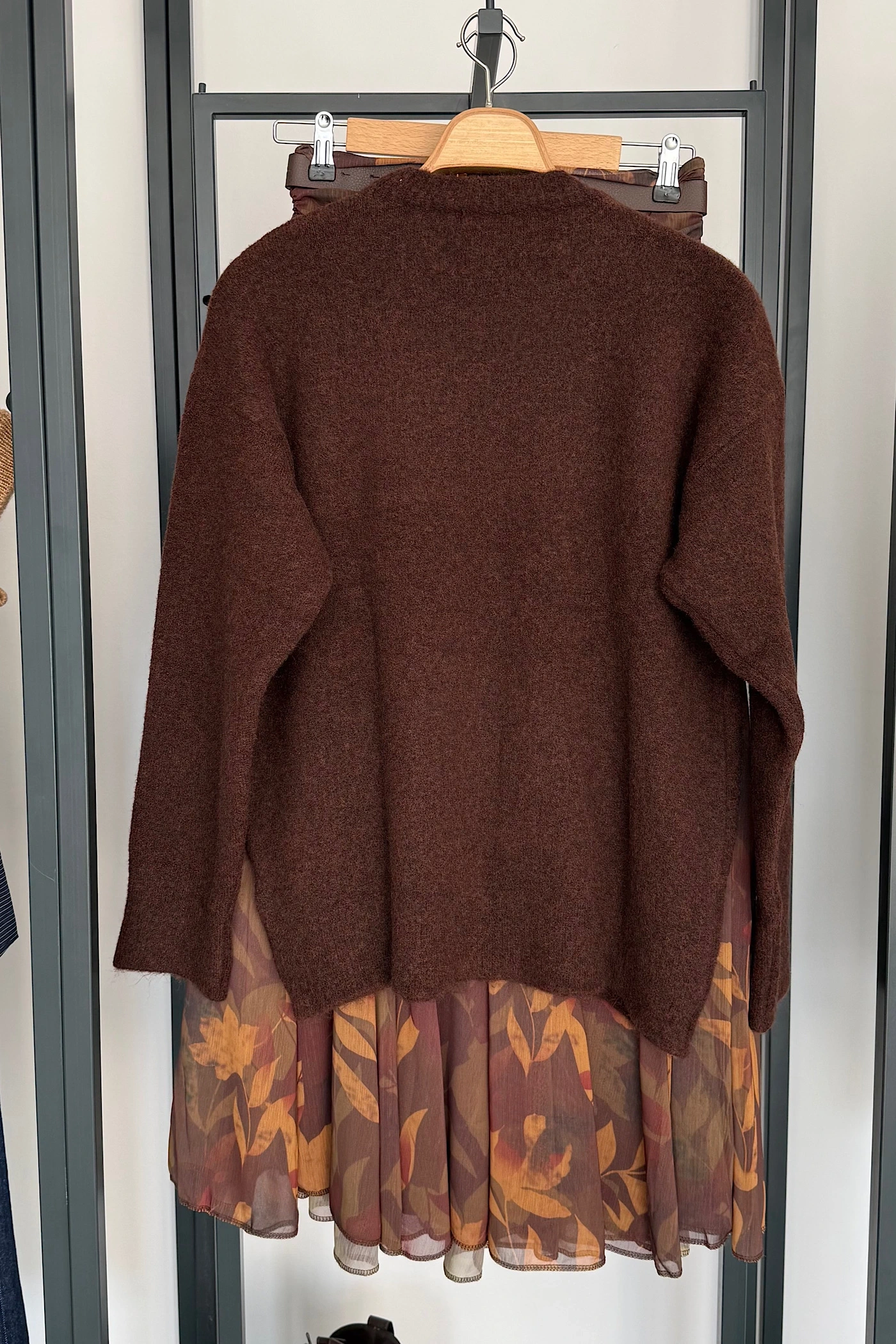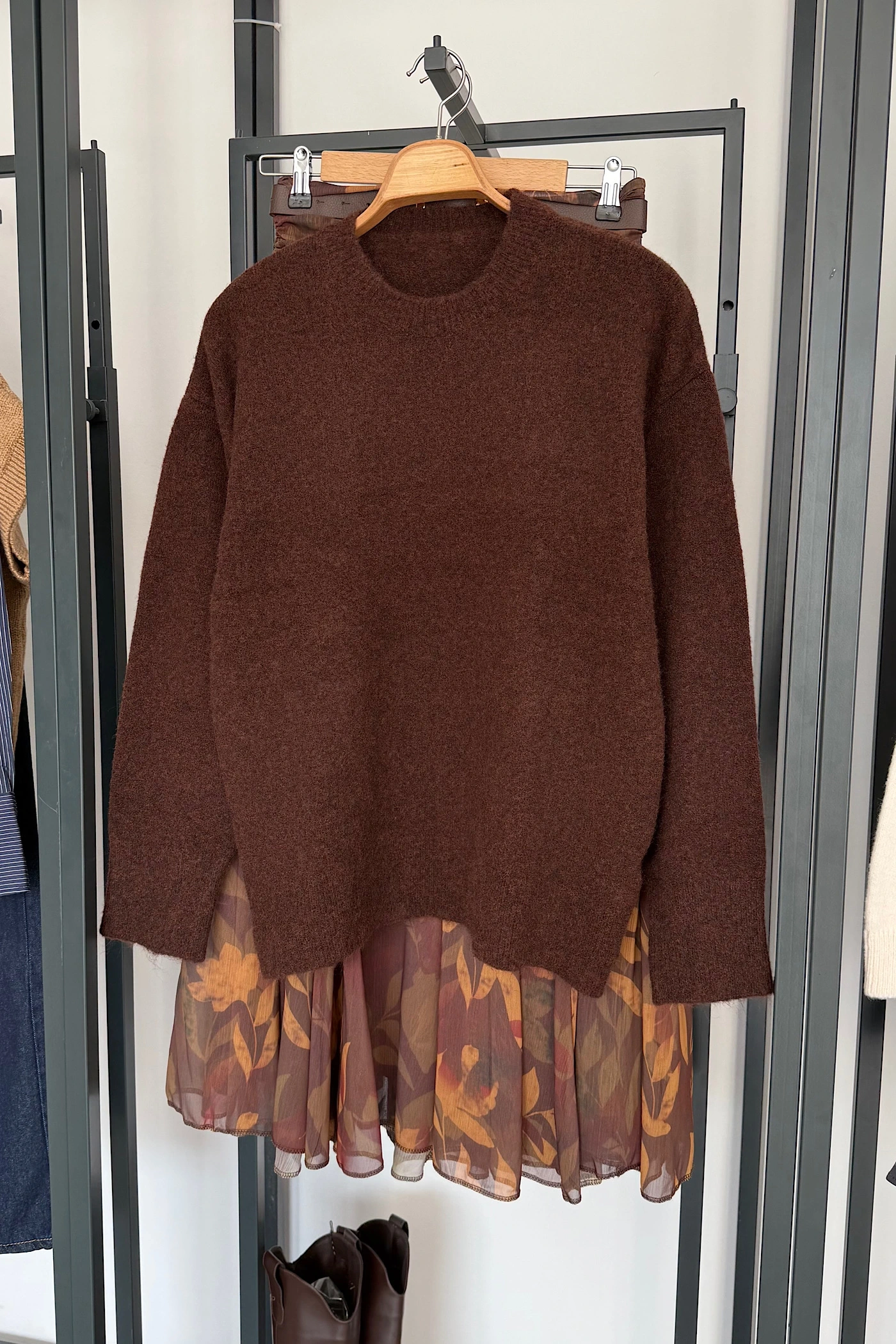 Yumuşak Dokulu Bisiklet Yaka Kazak Kahverengi