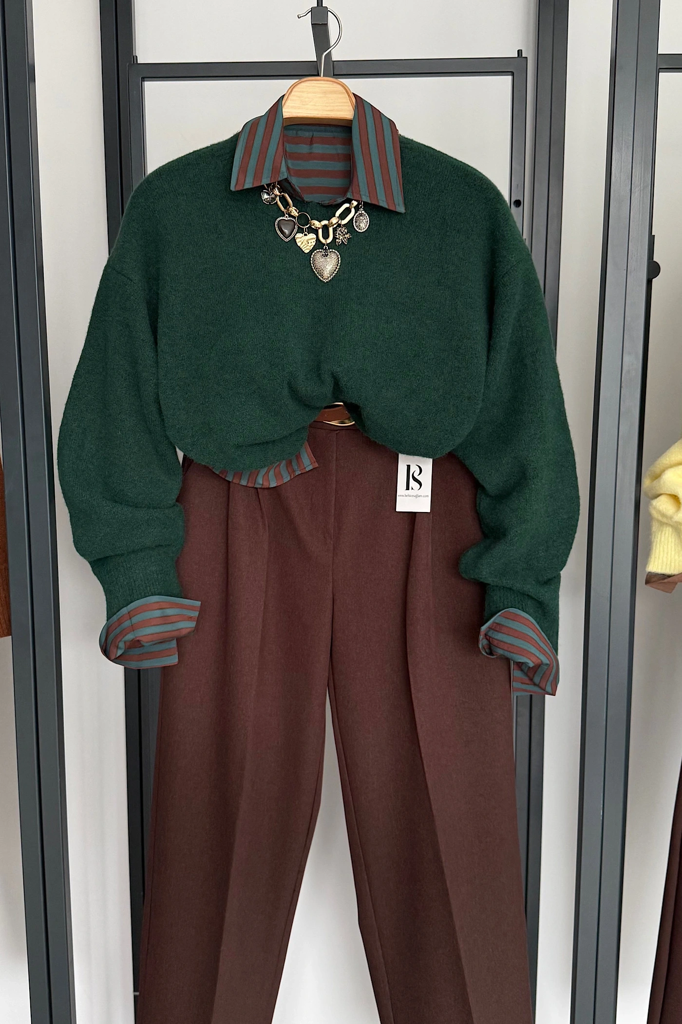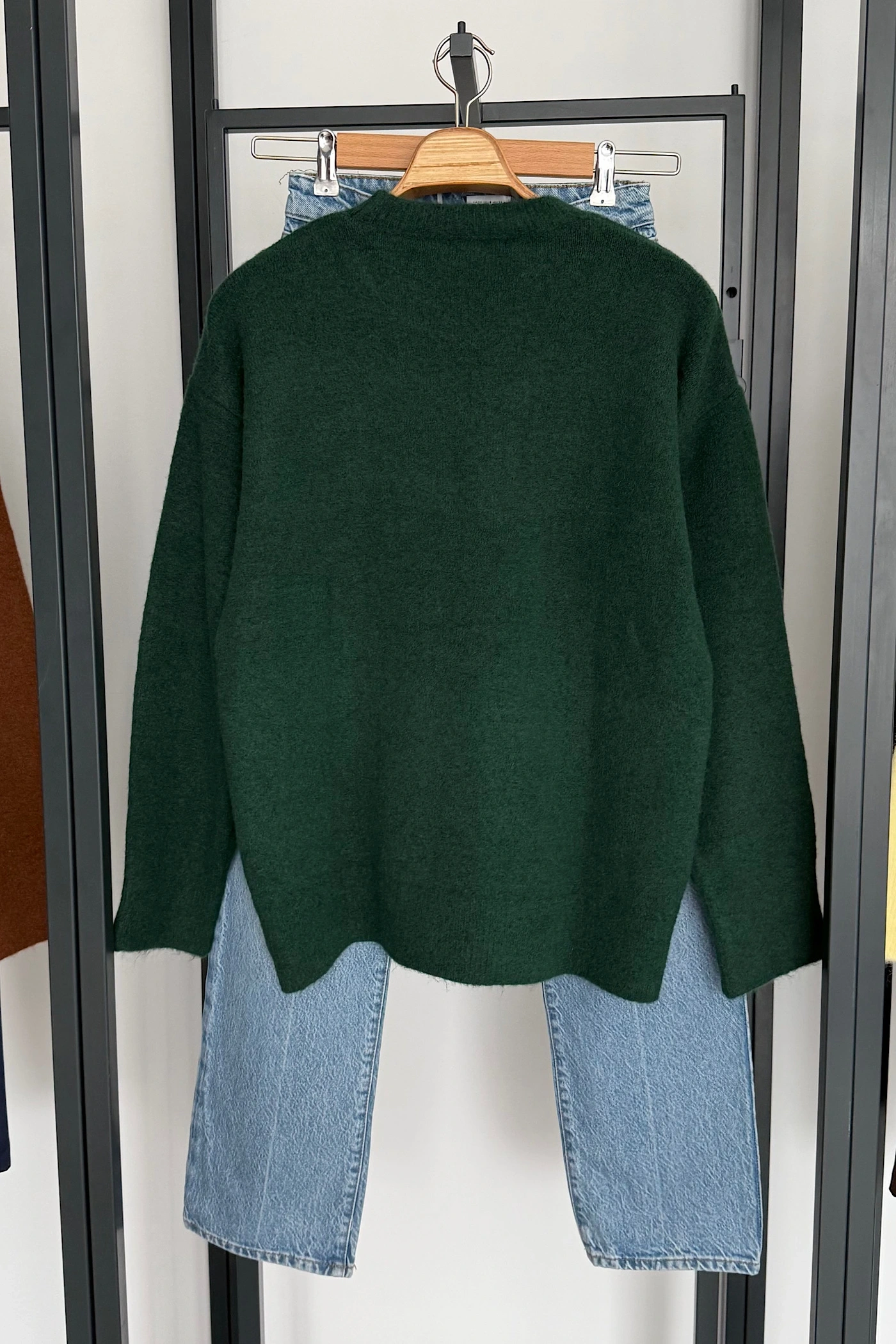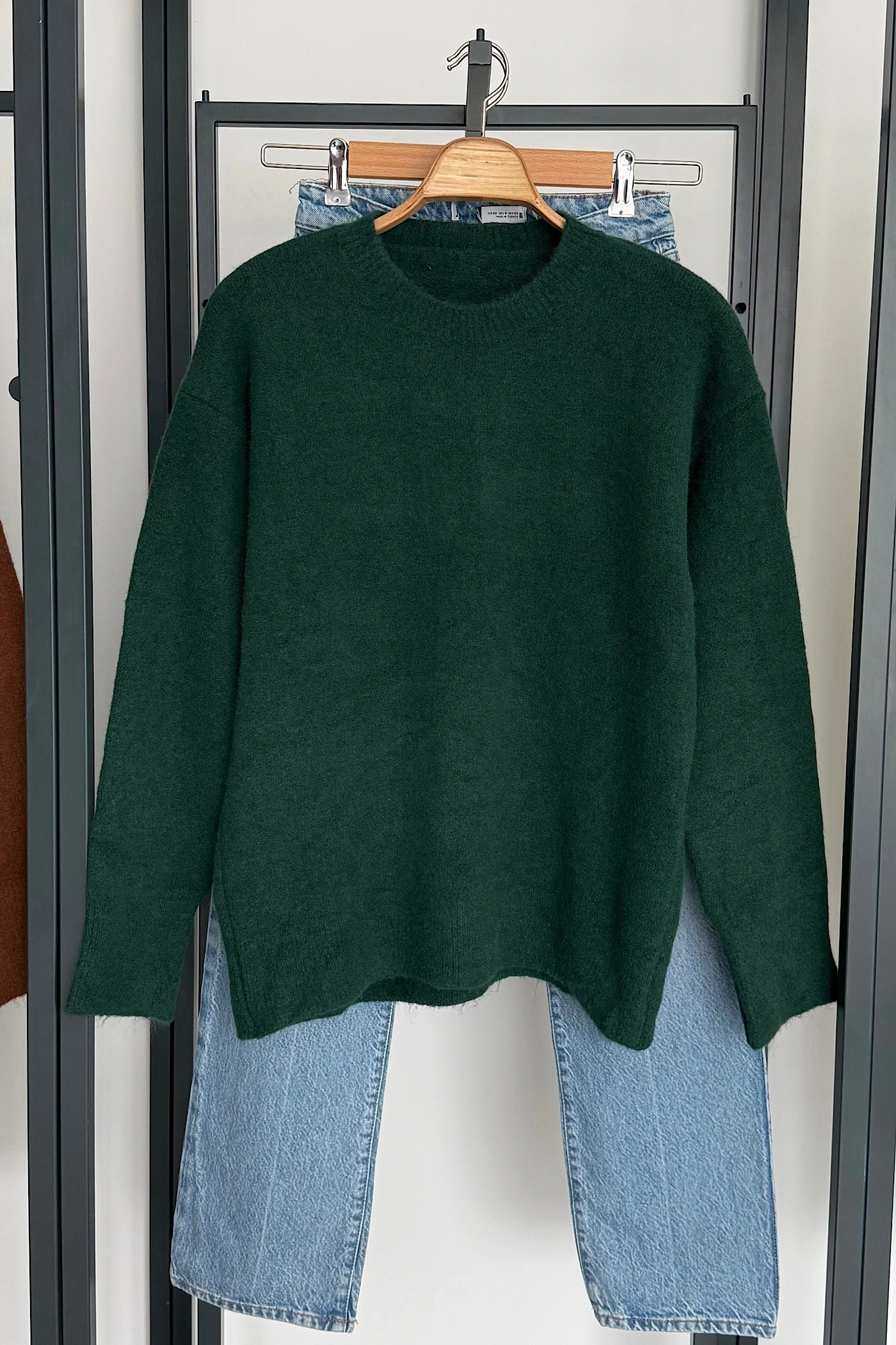 Yumuşak Dokulu Bisiklet Yaka Kazak Zümrüt