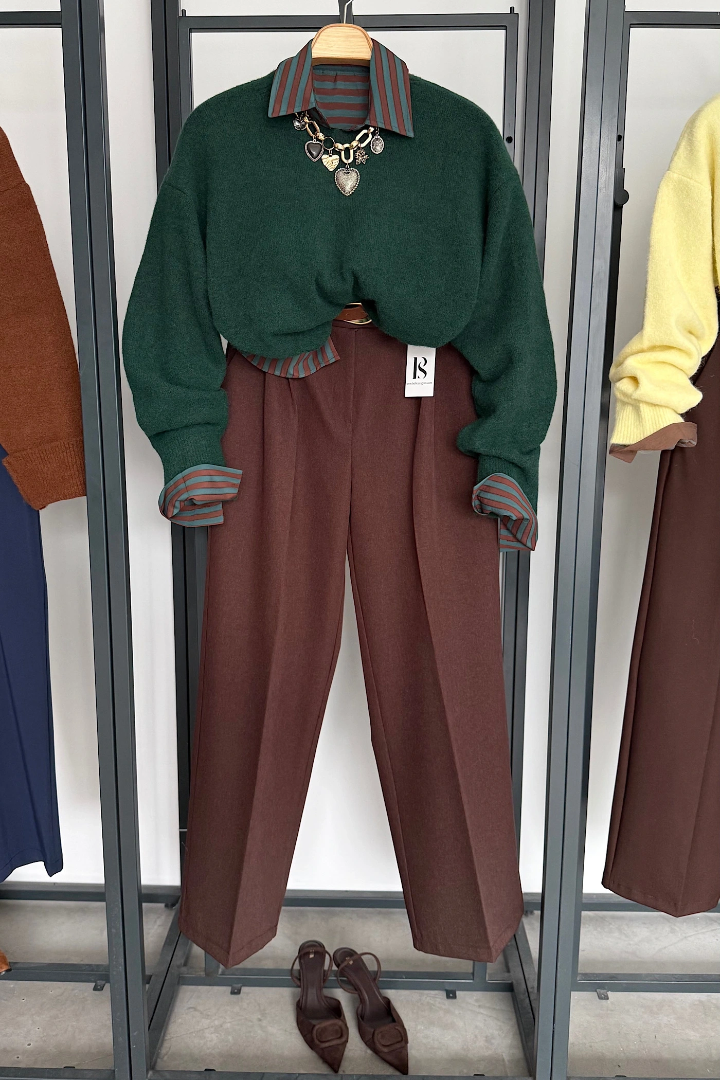 Şardonlu Alpaka Karışımlı Triko Kazak Kahverengi
